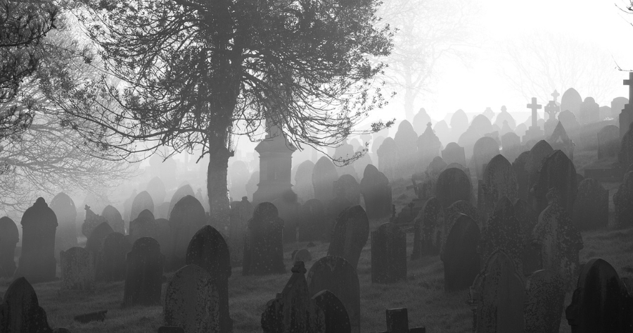Foggy graveyard